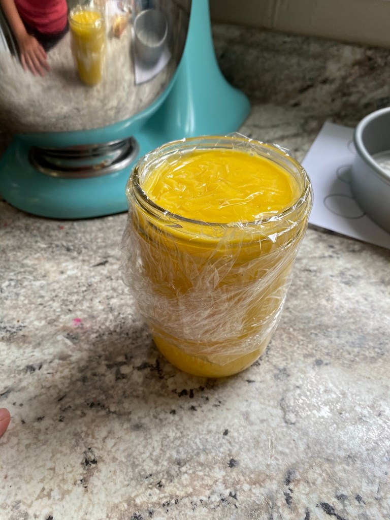 Next up was the lemon curd which can also keep in the fridge for a bit and would stay in between the cake layers more easily if cold.