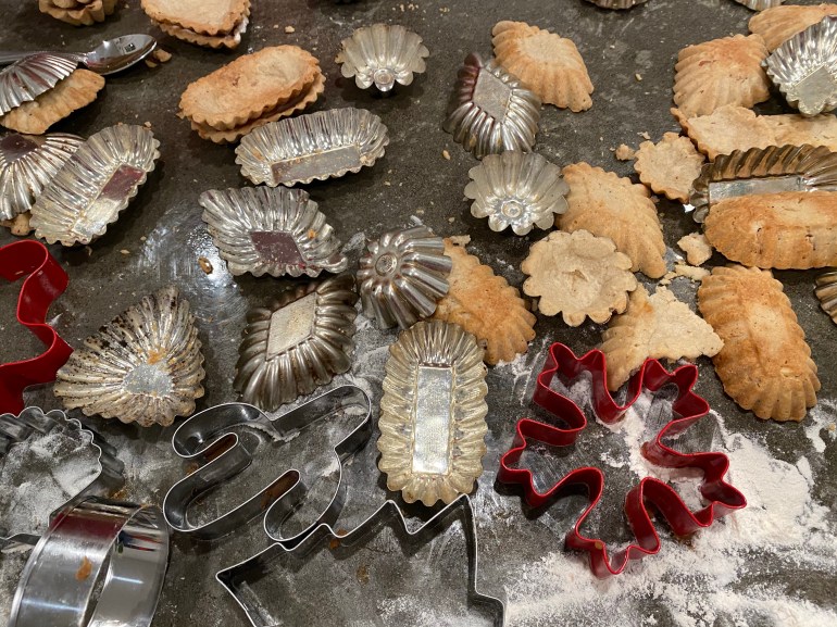 These are Scandinavian tart cookies. They’re shaped like a tart but more like a sugar cookie (plus cardamom and almonds).Yummy and cute plus those little tins are a treasure.