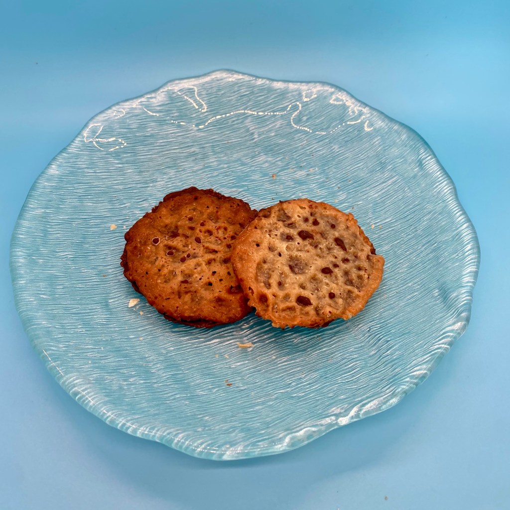 The second cookie we made was krumkake. These are normally wrapped around a wooden cone while still warm to make a cone shape that can be filled with whipped cream and lingonberries. We made them flat though for easier storage and snacking.