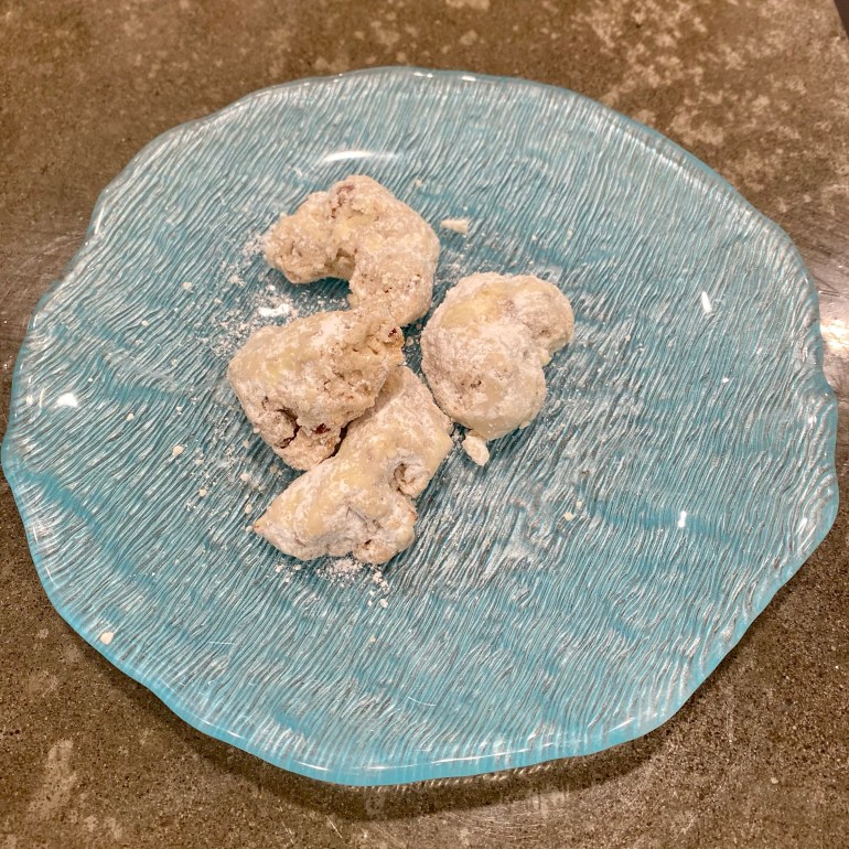 I’ve called these Italian Wedding Cookies or Mexican Wedding Cookies in the past. They are some of my favorites — so nutty and crumbly. I was excited to make some of my own and learned to appreciate they’re generally a little bit salty too.