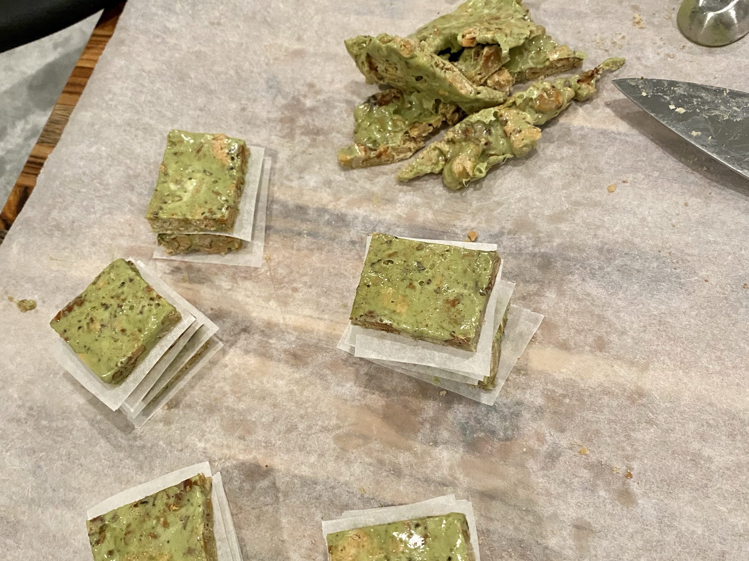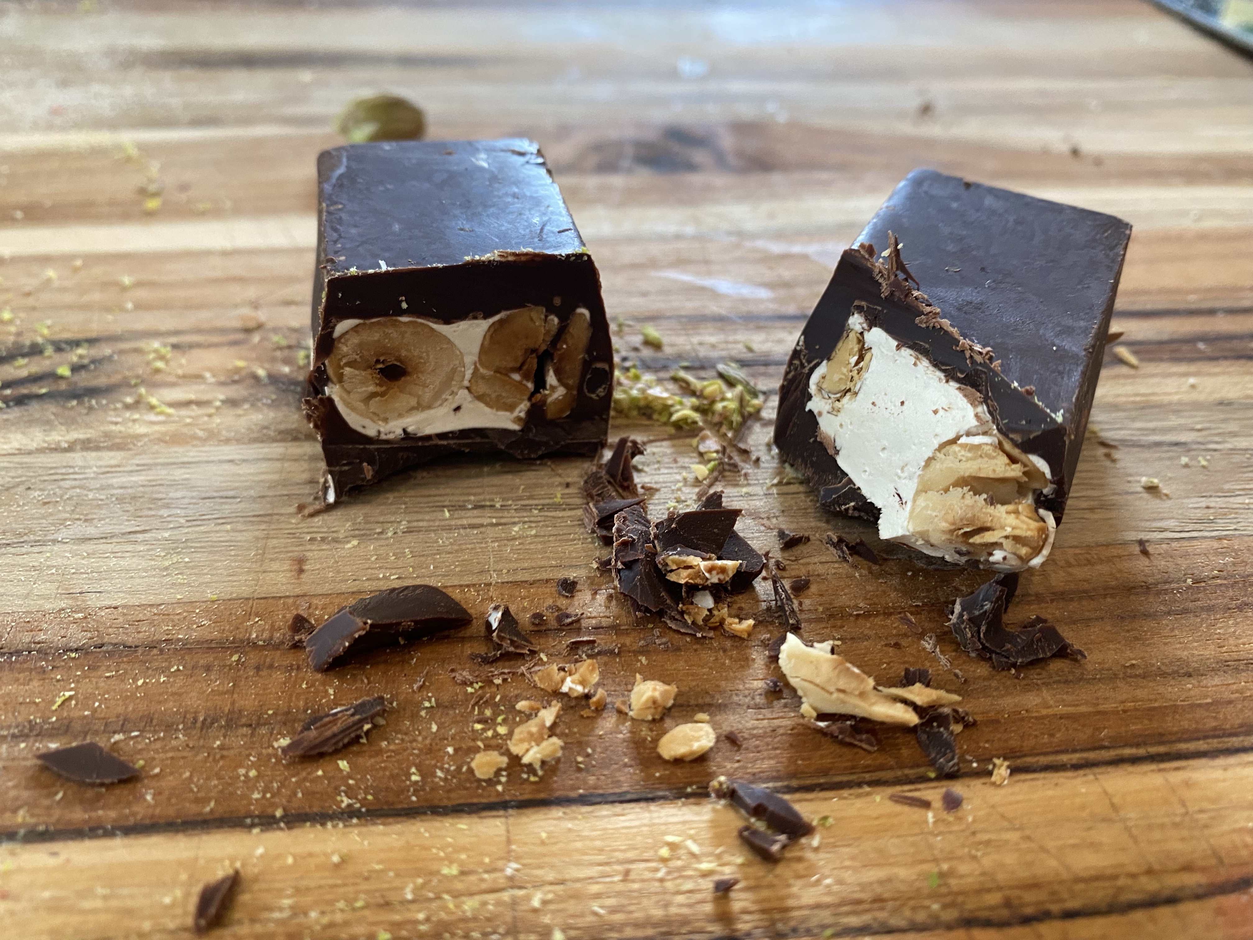 The taste is somewhat bland if I’m being honest. You get the green tea but just barely. Later experiments make me think this is just a feature of nougat and probably why we primarily eat it covered in chocolate.