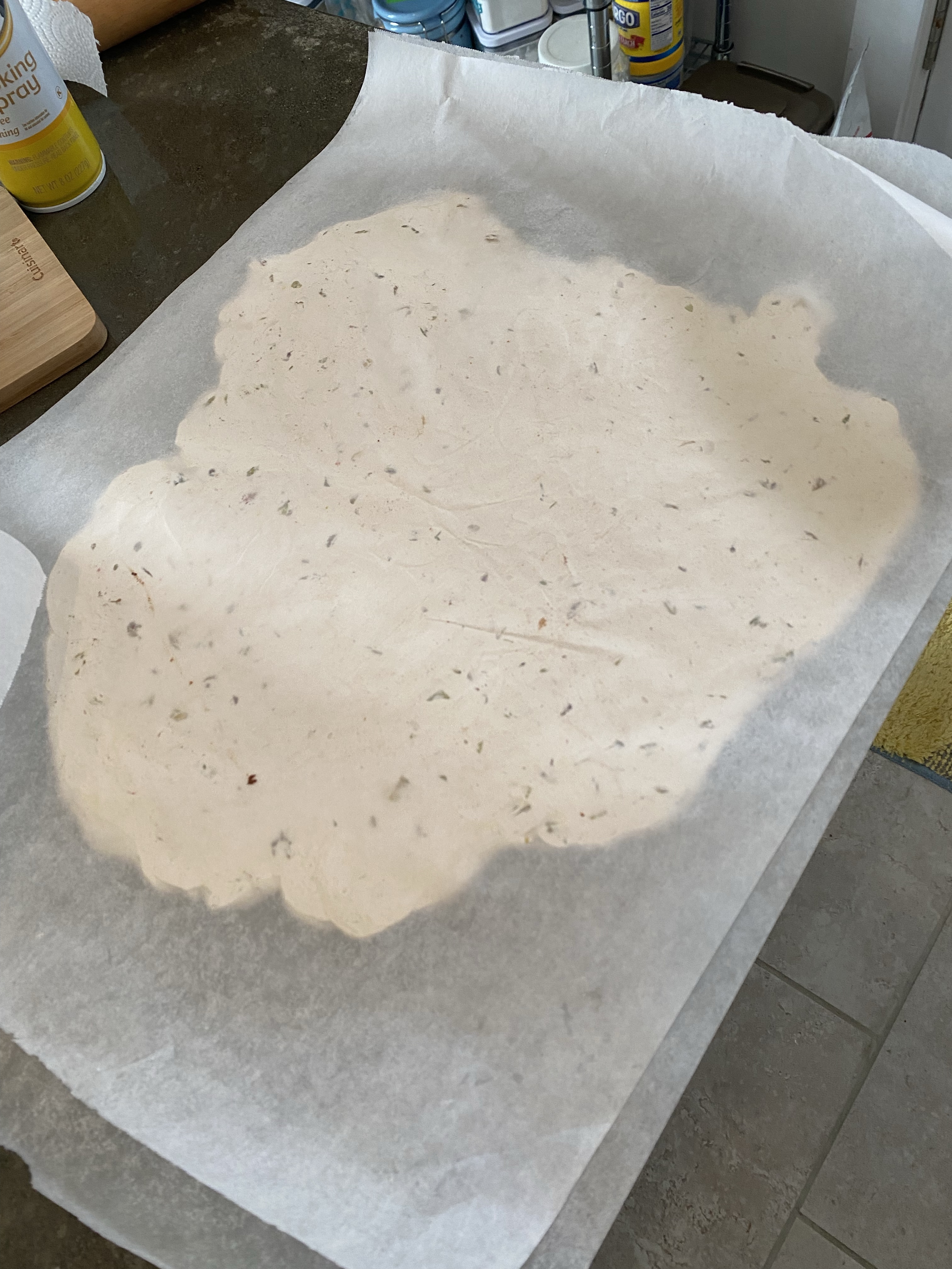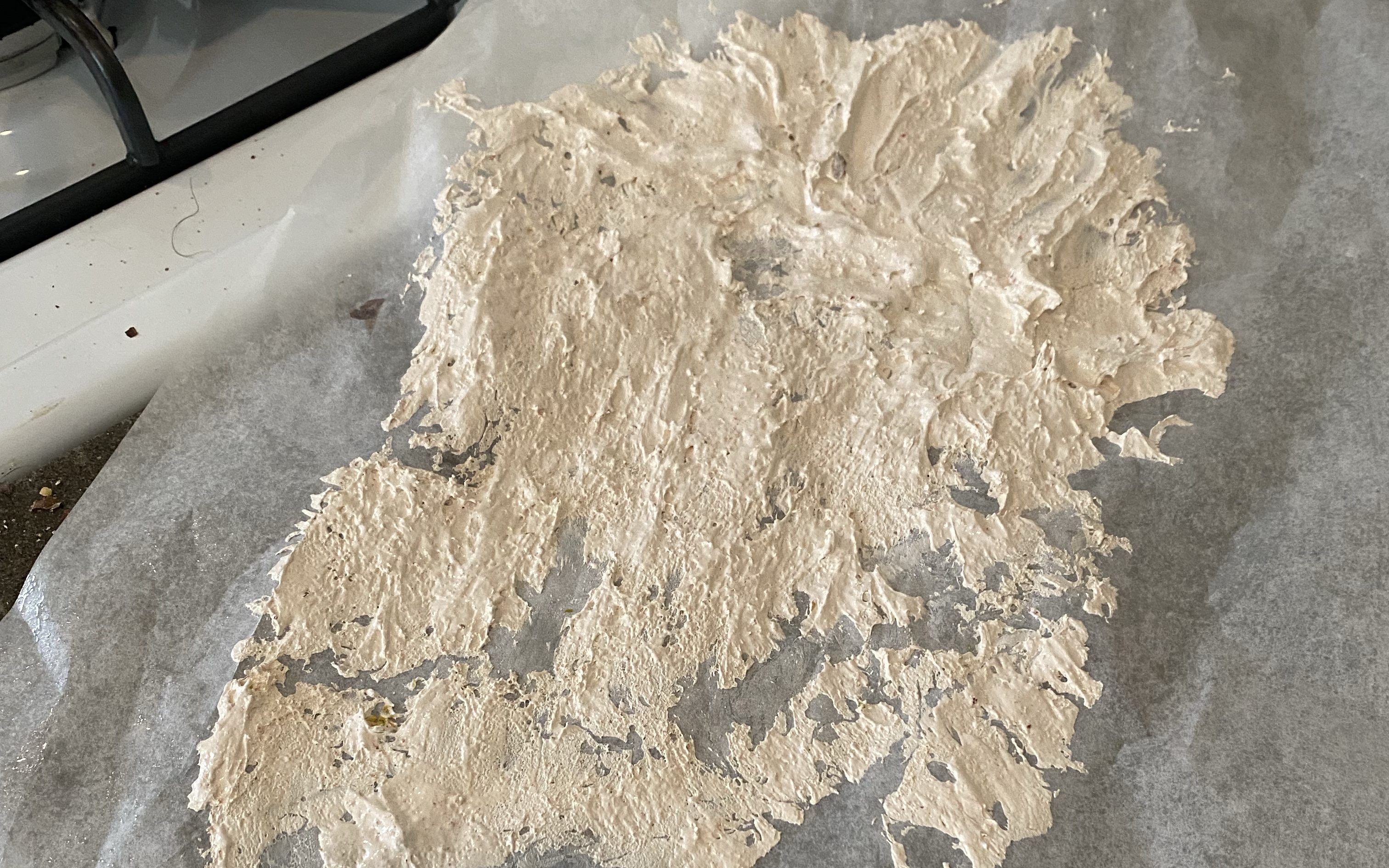 I cooked it long enough, I did increase the volume of strawberry by a lot to try and get more flavor. I did not remember to grease the parchment paper…